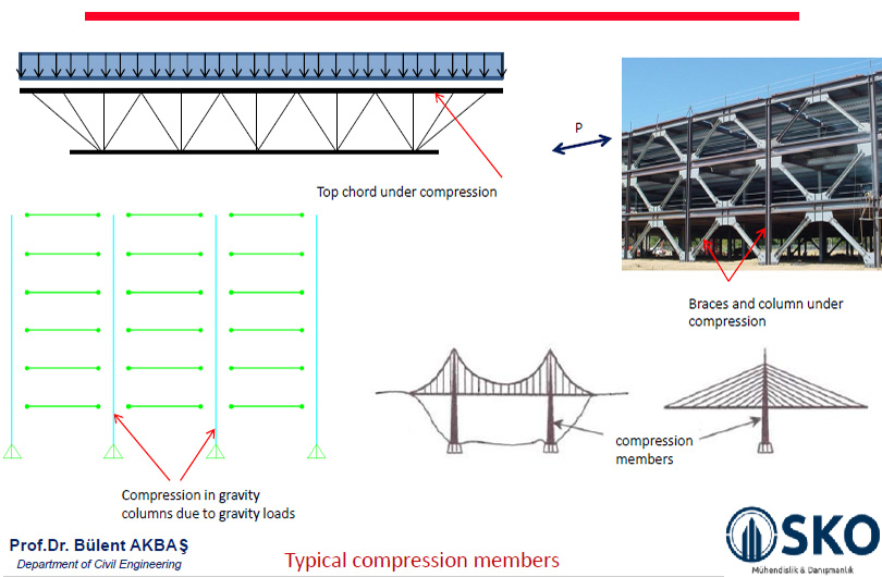 • Basınç elemanlarının tasarımı, Çaprazlı çerçevenin basınca çalışan elemanı, leaning (yaslanan) kolonların tasarımı,