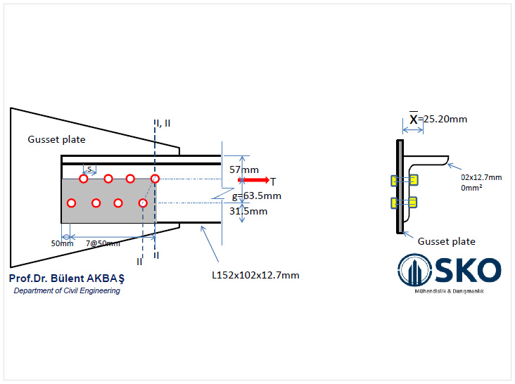 - - Çekme kuvveti etkisinde brüt alanda akma dayanımı, (yielding of gross area)